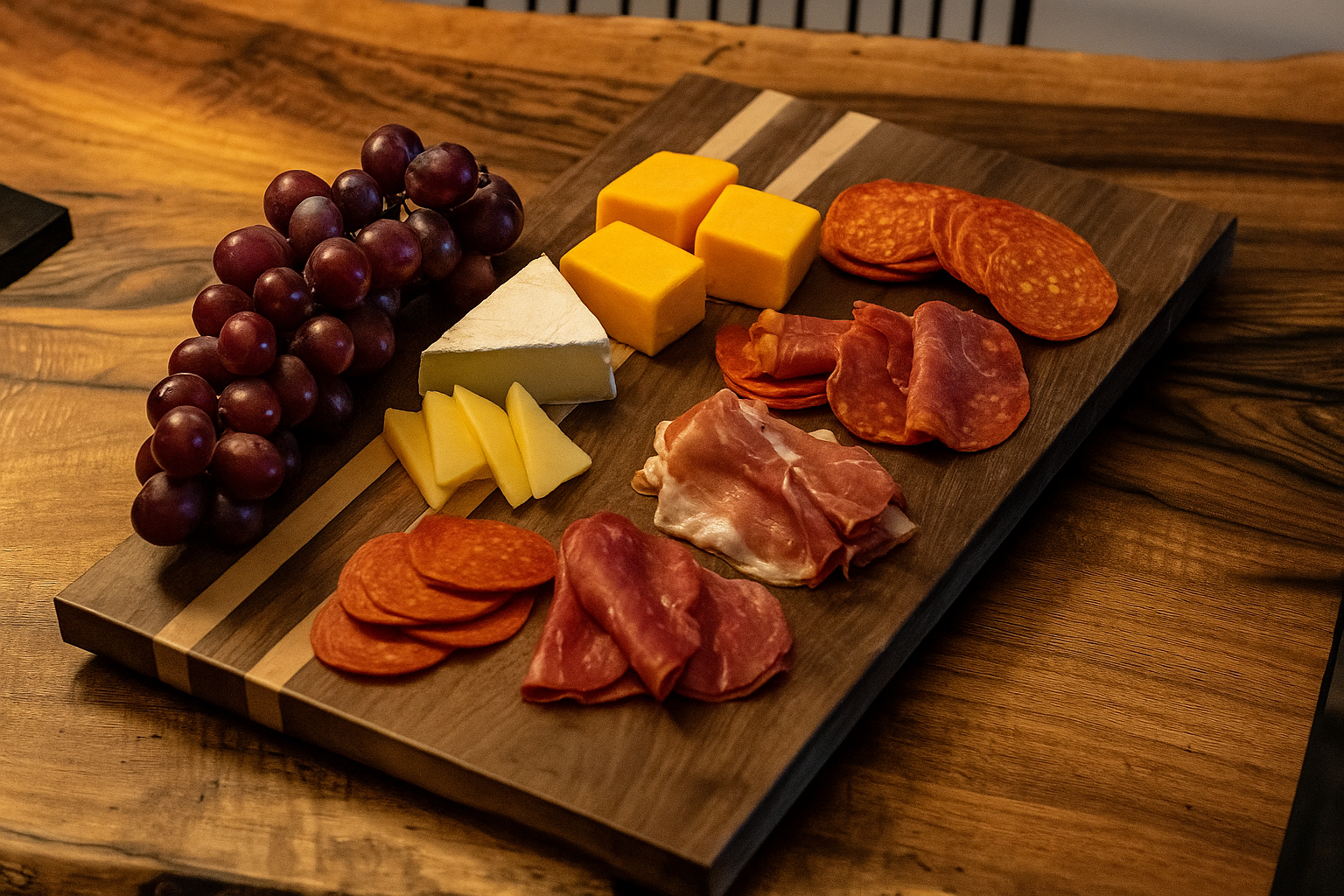 • Charcuterie Boards – Finished with a food-safe coating but not intended for cutting. Cutting on these boards will damage the finish and may render them unsafe for food contact.